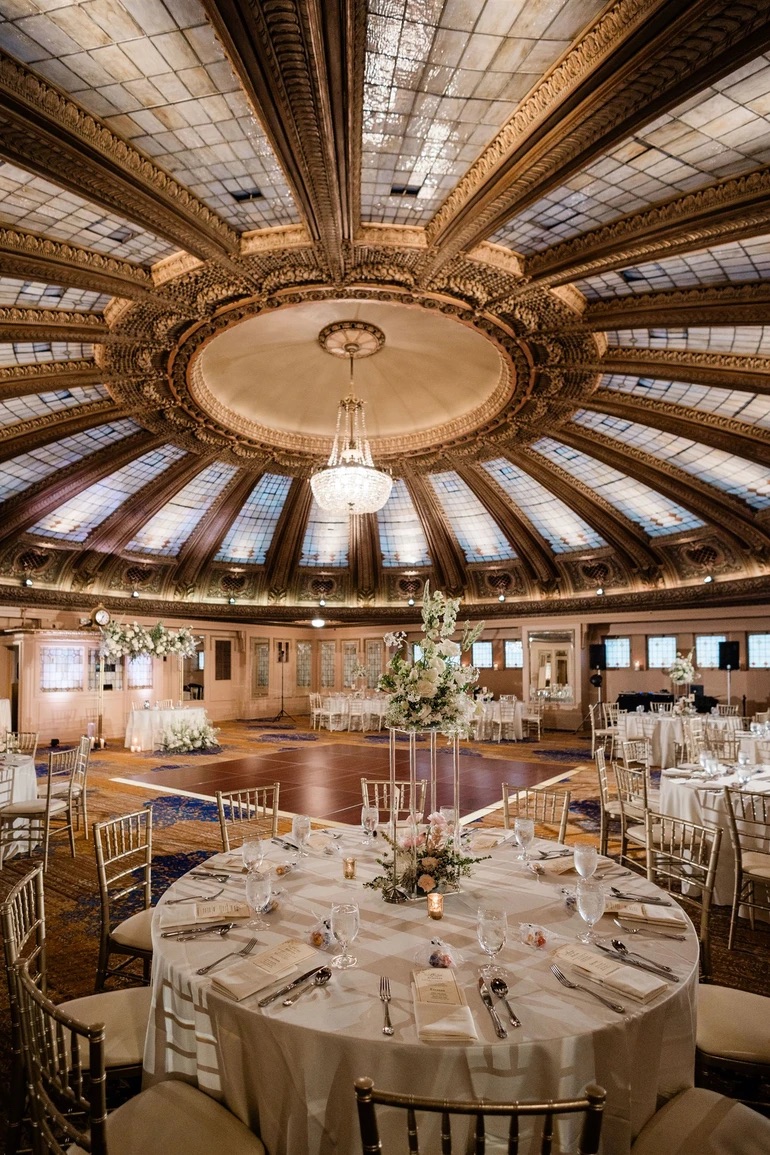 The iconic Arctic Club Hotel, built in 1916, blends historic architecture with modern comforts. This 10-story landmark has 120 rooms and a rich Klondike Gold Rush history. The stunning Northern Lights Dome Room features a spectacular stained-glass dome ceiling and ornate details. It accommodates weddings of 50 to 200 guests in approximately 4,800 sq. ft. Celebrate your special day in this unique, elegant venue with unforgettable charm.