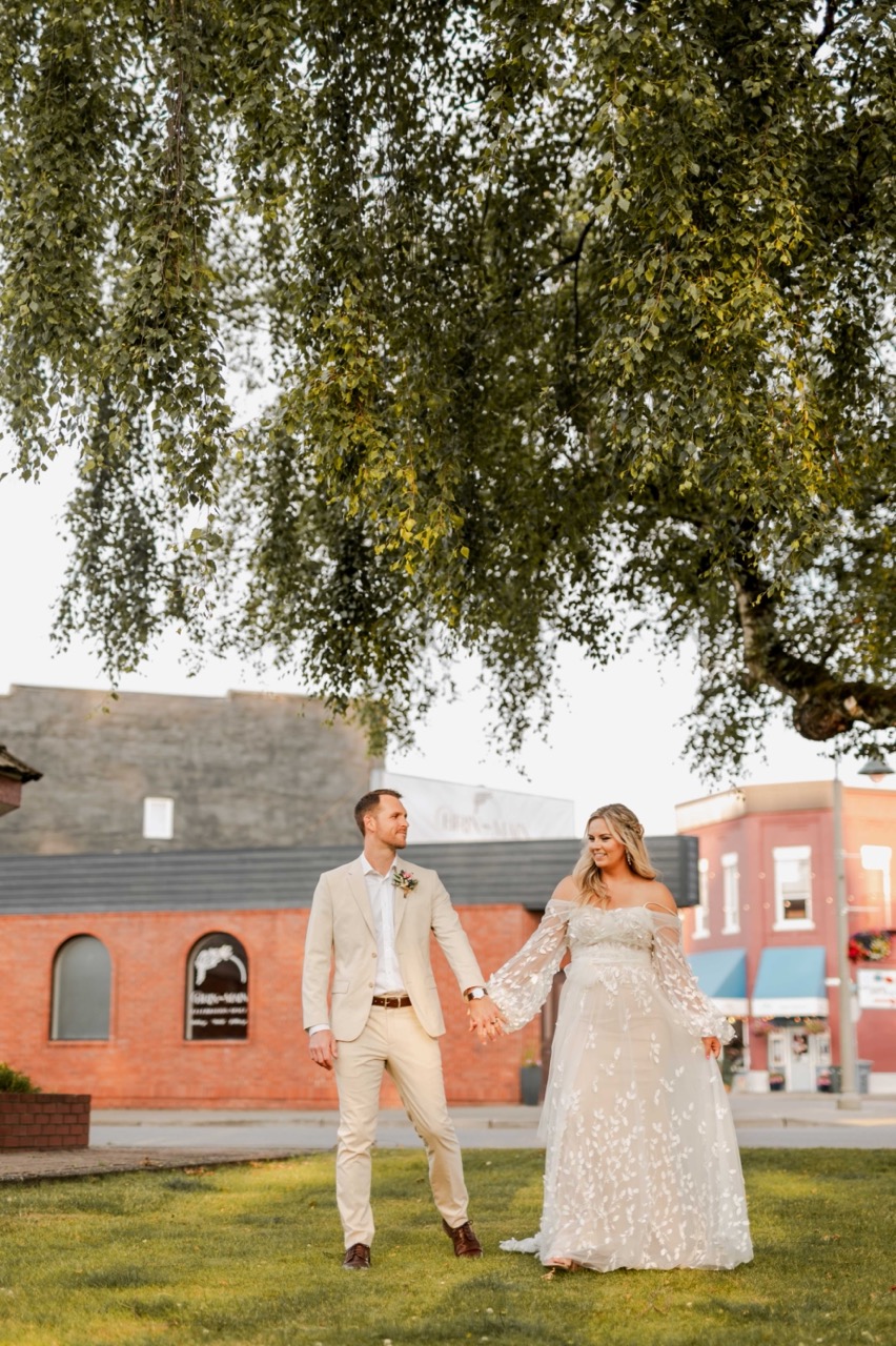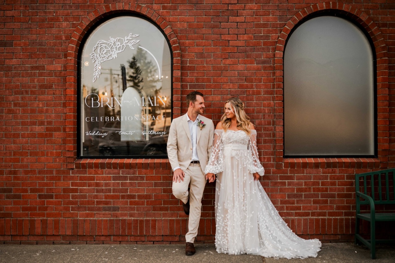 Conveniently located on Buckley’s historic Main Street, Brix on Main is a versatile year-round venue. This “Celebration Space” features weathered brick, lovely arched windows and refinished concrete floors. Amenities include two getting ready rooms, a stylish wet bar, and a catering prep kitchen. We are also located directly across from Thunderbird Park and have the ability to rent the park for outdoor ceremonies or festivities. Brix on Main is a classy blank slate in the heart of Buckley. It is perfect for intimate events such as rehearsal dinners, baby/wedding showers and elopements. It is also spacious enough for weddings, events and gatherings with up to 100-120 guests. We love personalizing events to your style. Share your vision, and we will bring it to life!