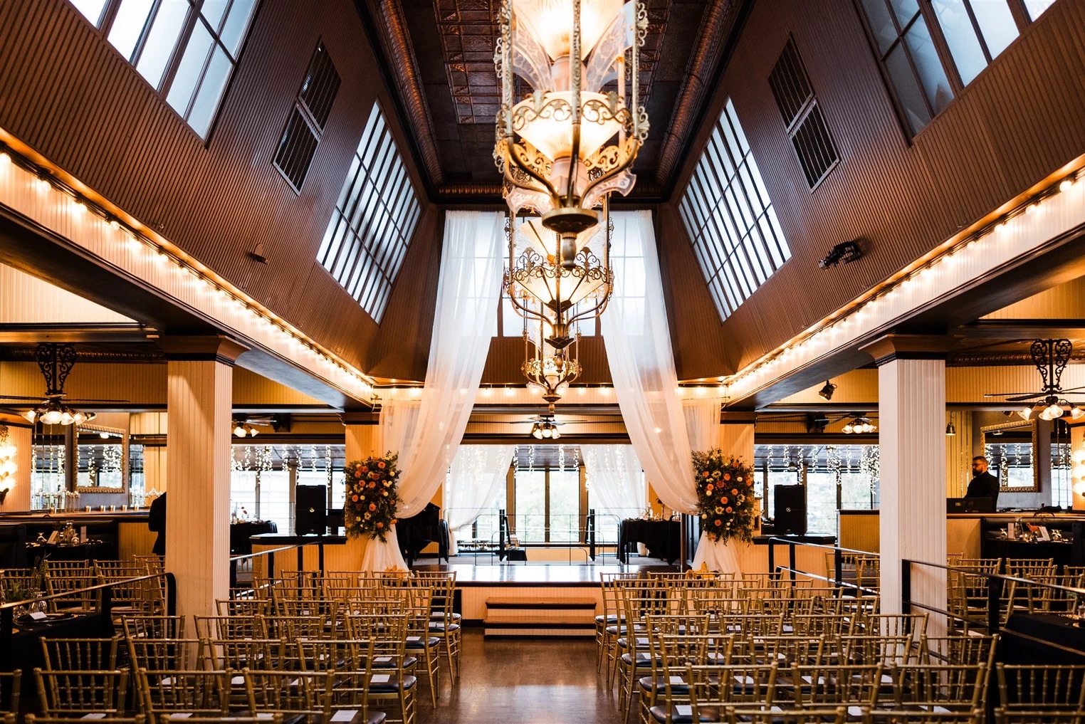 • 6,000 sq. ft. venue with copper ceiling and grand chandeliers
