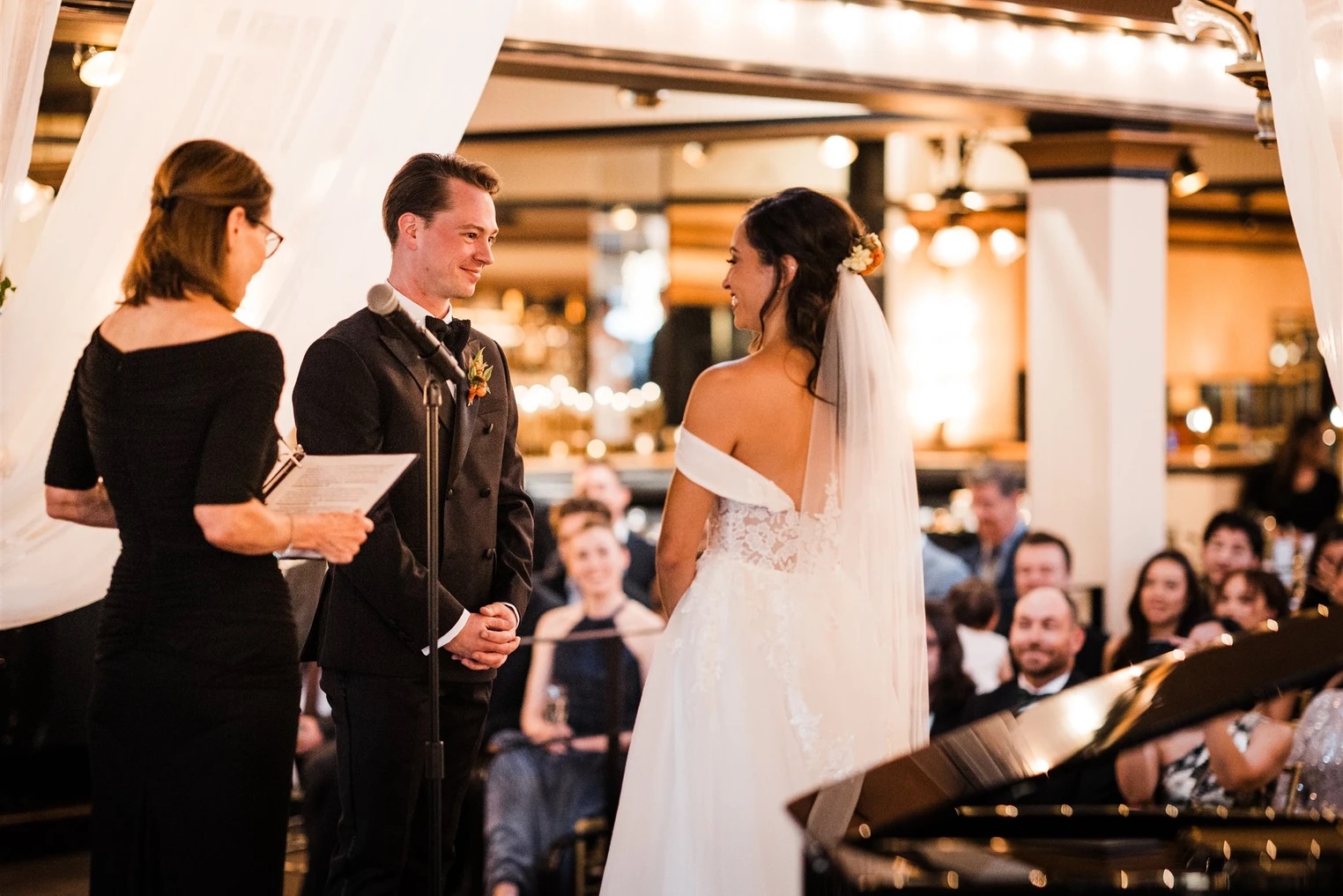 Imperia Lake Union is a stylish wedding venue in Seattle with stunning views of peaceful Lake Union. Built in 1927, it features a unique art-deco style and was renovated into an event space over 20 years ago. The venue offers 6,000 sq. ft. with a luxurious copper ceiling and 10-foot chandeliers. Exchange vows indoors or outdoors, then enjoy vibrant grounds perfect for photos. Celebrate with a custom menu by lead chef Ian Hoyt, paired with drinks from the on-site bar.