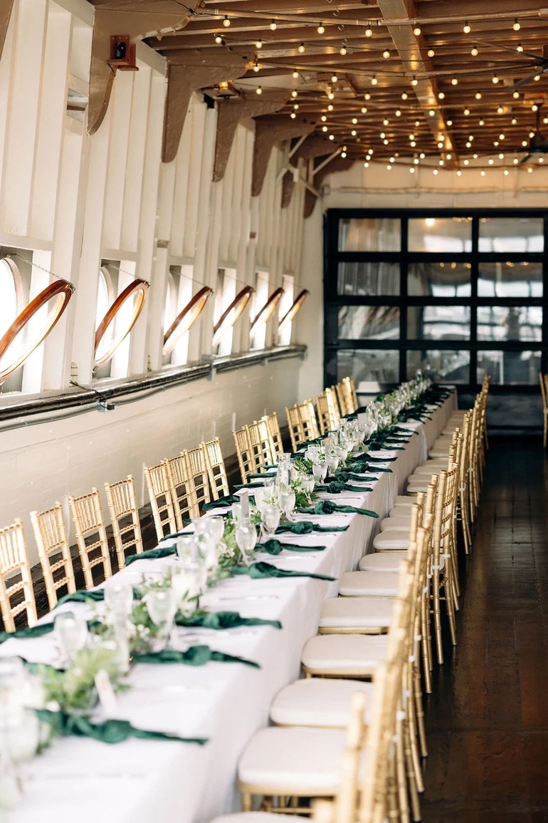 The Skansonia features polished wood floors, a hand-carved center bar, and a spacious outdoor deck perfect for golden hour celebrations. Whether you’re planning a wedding or a private event, its authentic nautical setting offers a one-of-a-kind experience.
